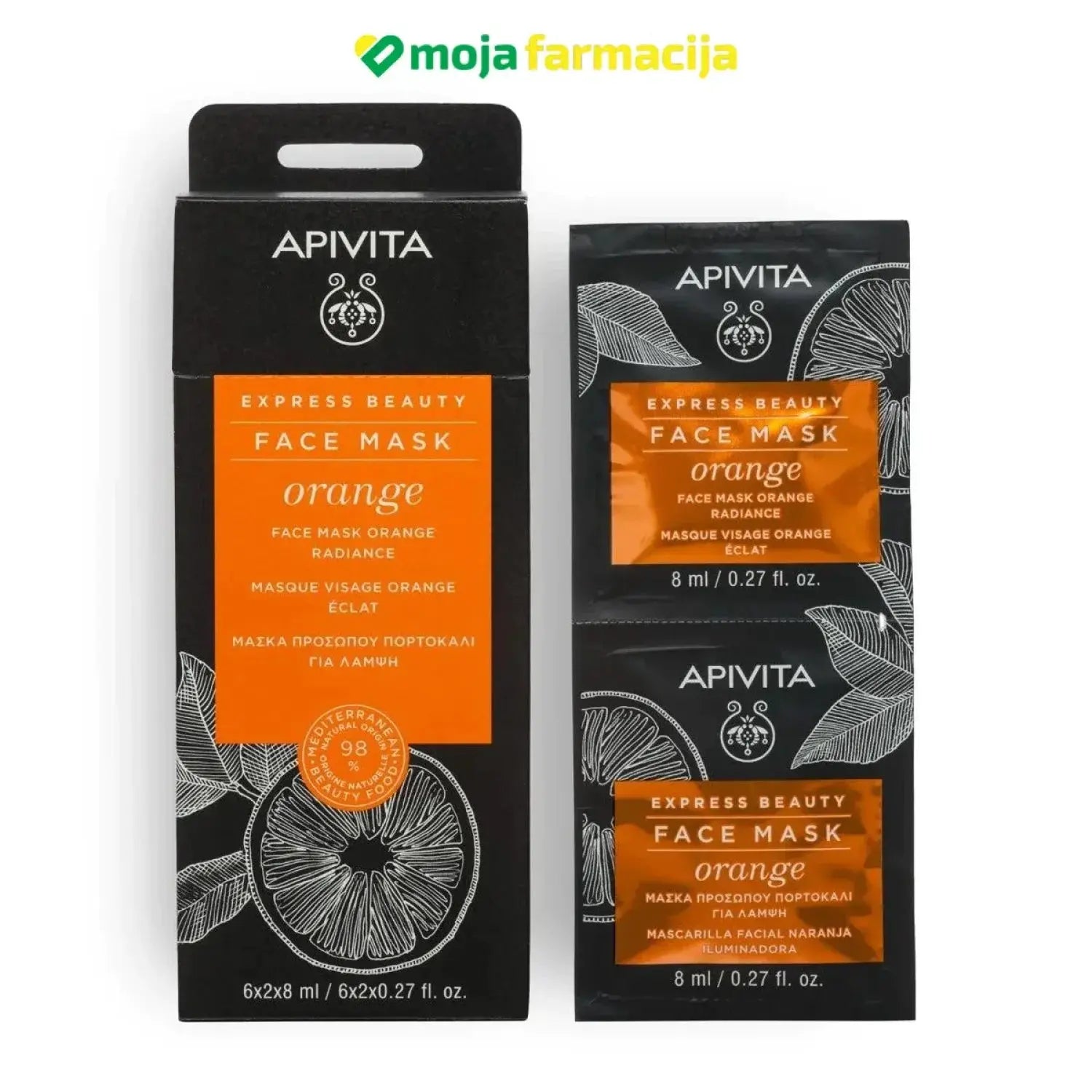 Express beauty maska za lice s narančom, sočnim voćem mediteranskih krajeva bogatim vitaminom C i kremasto-gel teksturom trenutno vraća sjaj koži.
