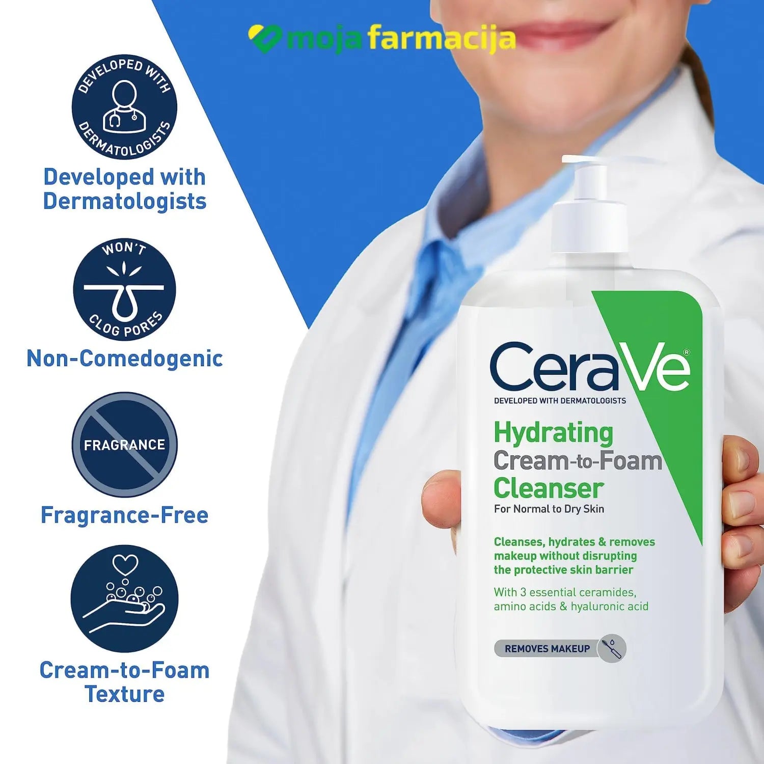 CeraVe Hidratantna kremasto-pjenušava emulzija za čišćenje je napredni proizvod koji kombinira blagost kreme s učinkovitošću pjene za temeljno čišćenje kože. Ova emulzija nježno uklanja nečistoće, višak ulja i šminku bez isušivanja ili iritacije kože.