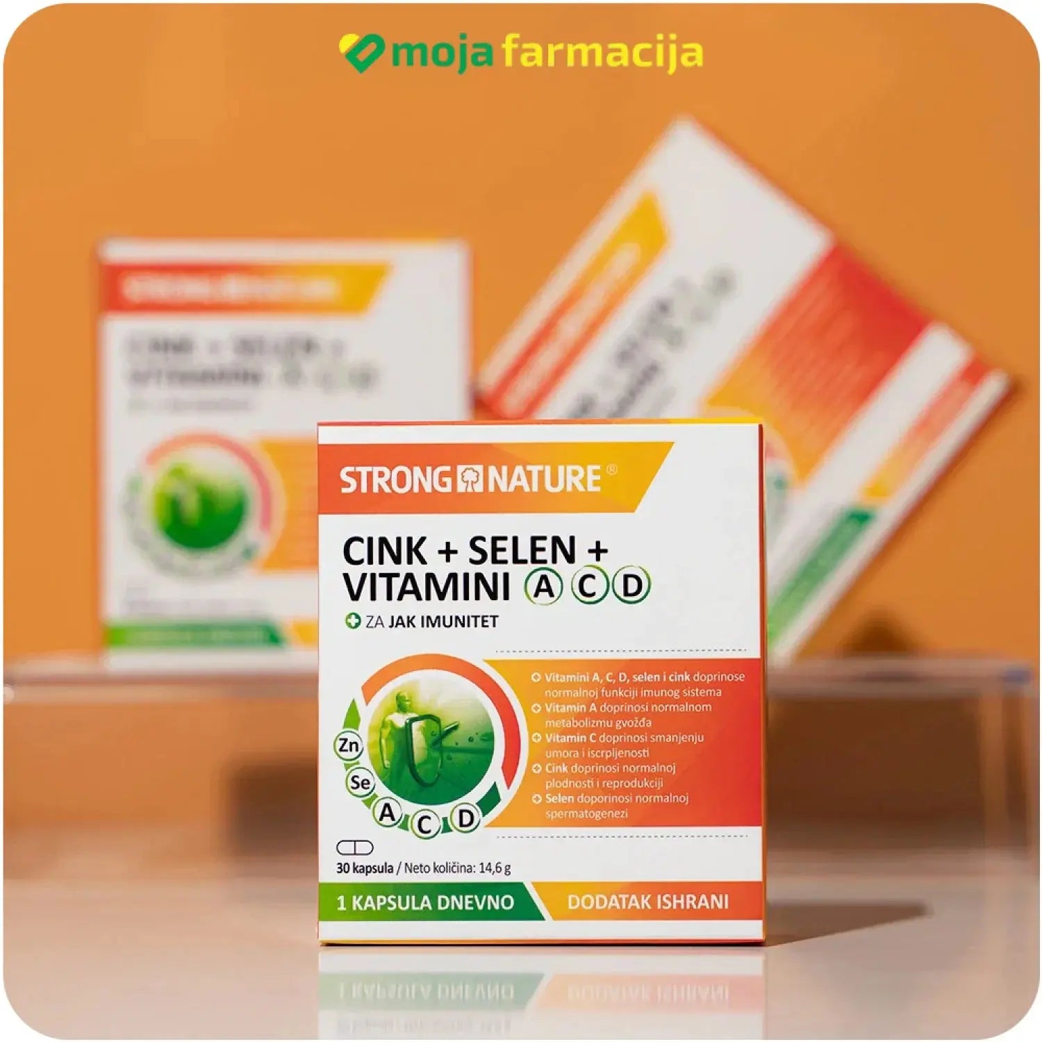 Dodatak ishrani na bazi vitamina A, C i D, selena i cinka namenjen očuvanju normalne funkcije imunog sistema.