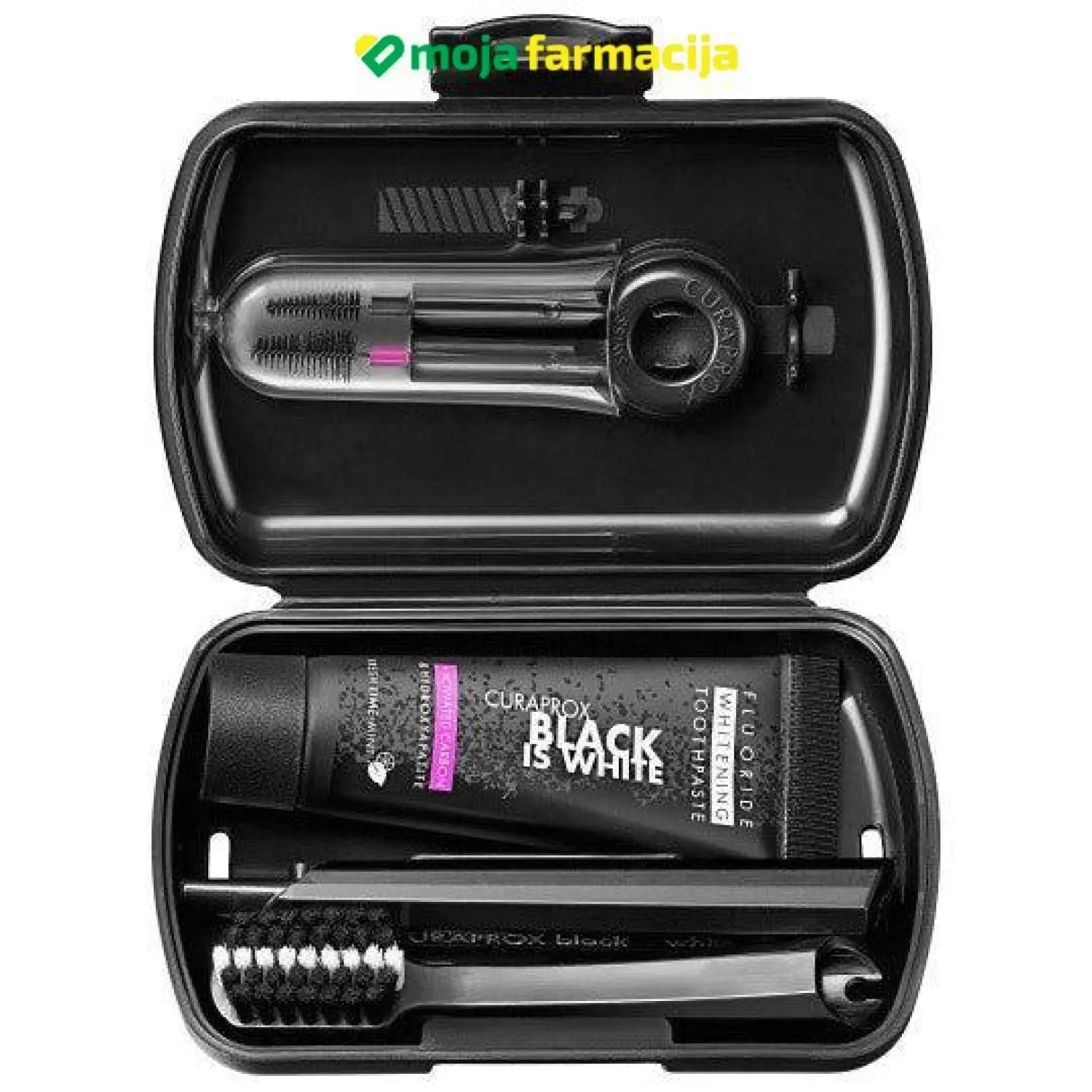 Black is white putni set s jedinstvenom četkicom i pastom za izbjeljivanje zuba, plus dvije stožaste međuzubne četkice na duo držaču. Sve što vam je potrebno za potpuno oralno zdravlje – gdje god se nalazili. Nema karijesa. Nema mrlja.