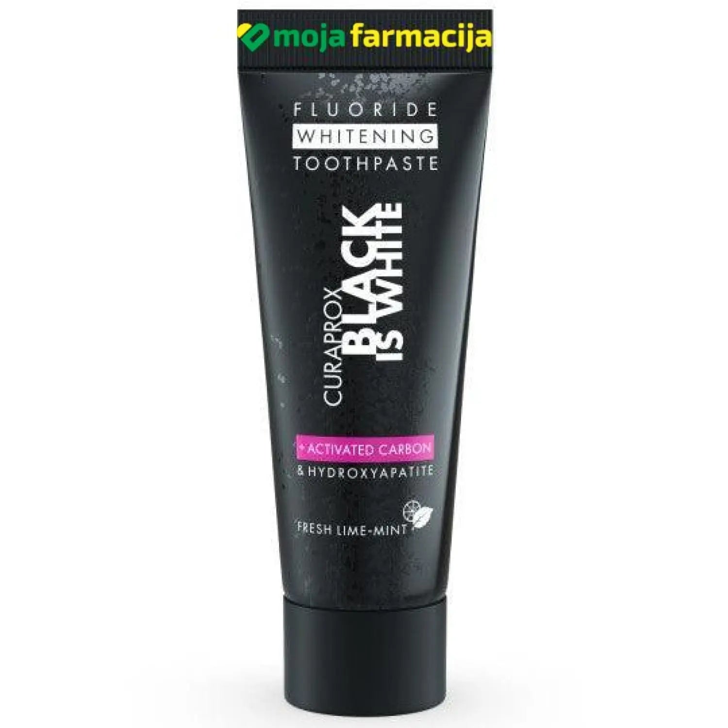 - Black is white pasta za zube nježno uklanja obojenja i mrlje. Bez kemijskih izbjeljivača. Bez agresivnih, abrazivnih sastojaka. Aktivni ugljik učinkovito apsorbira površinske mrlje od duhana, kave ili crnog vina.