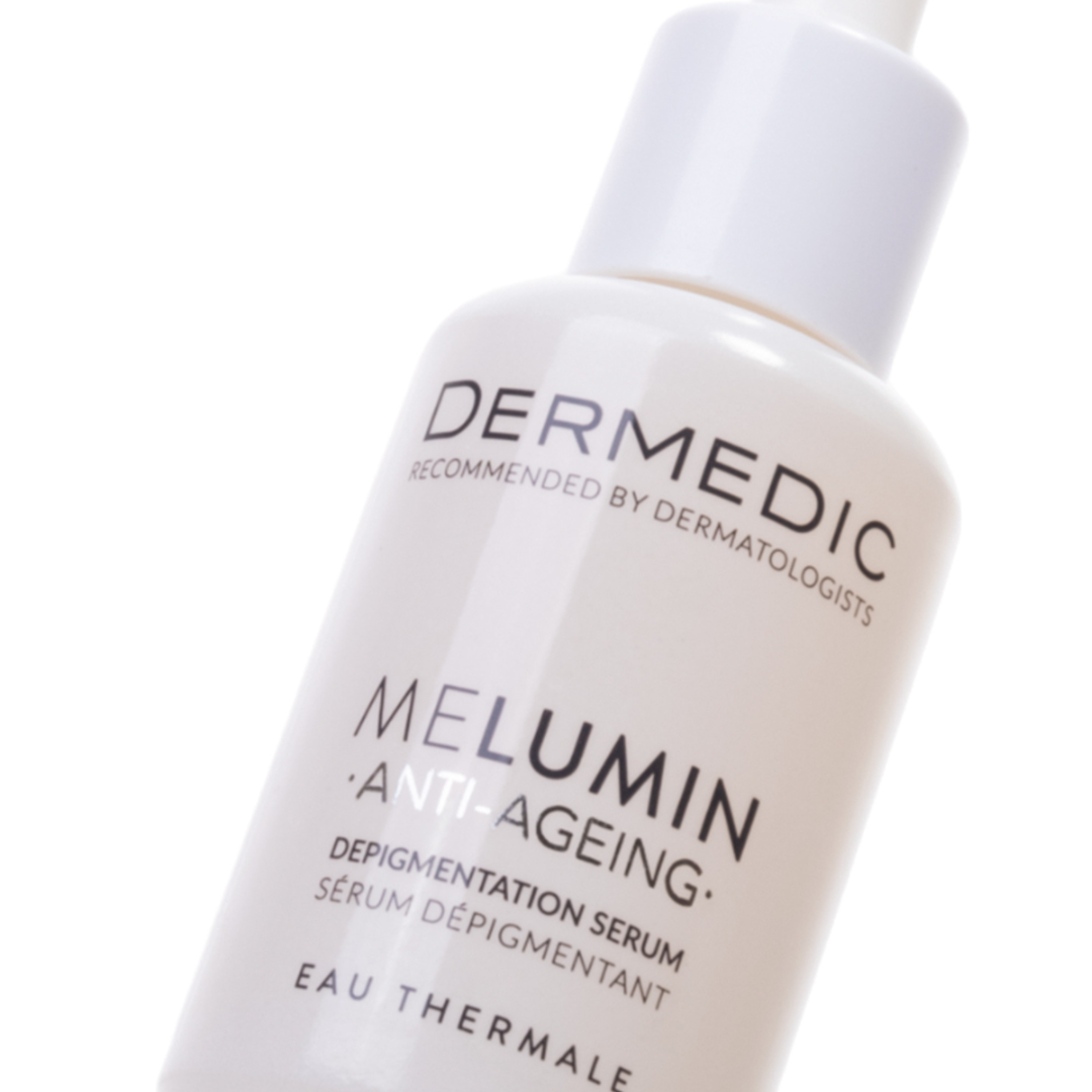 Prikladan za svakodnevnu njegu, DERMEDIC Melumin depigmentacijski serum ne samo da posvjetljuje postojeće diskoloracije već i pomaže u usporavanju procesa starenja kože. Klinički testirana i hipoalergena formula s termalnom vodom čini ovaj serum idealnim za sve tipove kože, uključujući osjetljivu.