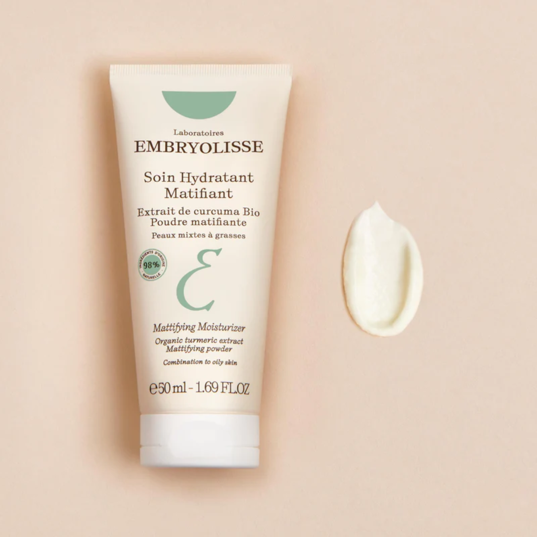 EMBRYOLISSE Mattifying Moisturizer savršen je saveznik za mješovitu do masnu kožu kojoj je potrebna dubinska hidratacija i kontrola sjaja. Ovaj hidratantni tretman, formuliran s 98% prirodnih sastojaka, nudi mat završnicu i dugotrajnu ravnotežu kože. Obogaćen organskim ekstraktom kurkume i biljnim glicerinom, pruža hidrataciju bez masnog osjećaja, dok istovremeno smanjuje vidljivost pora i ujednačava ten.