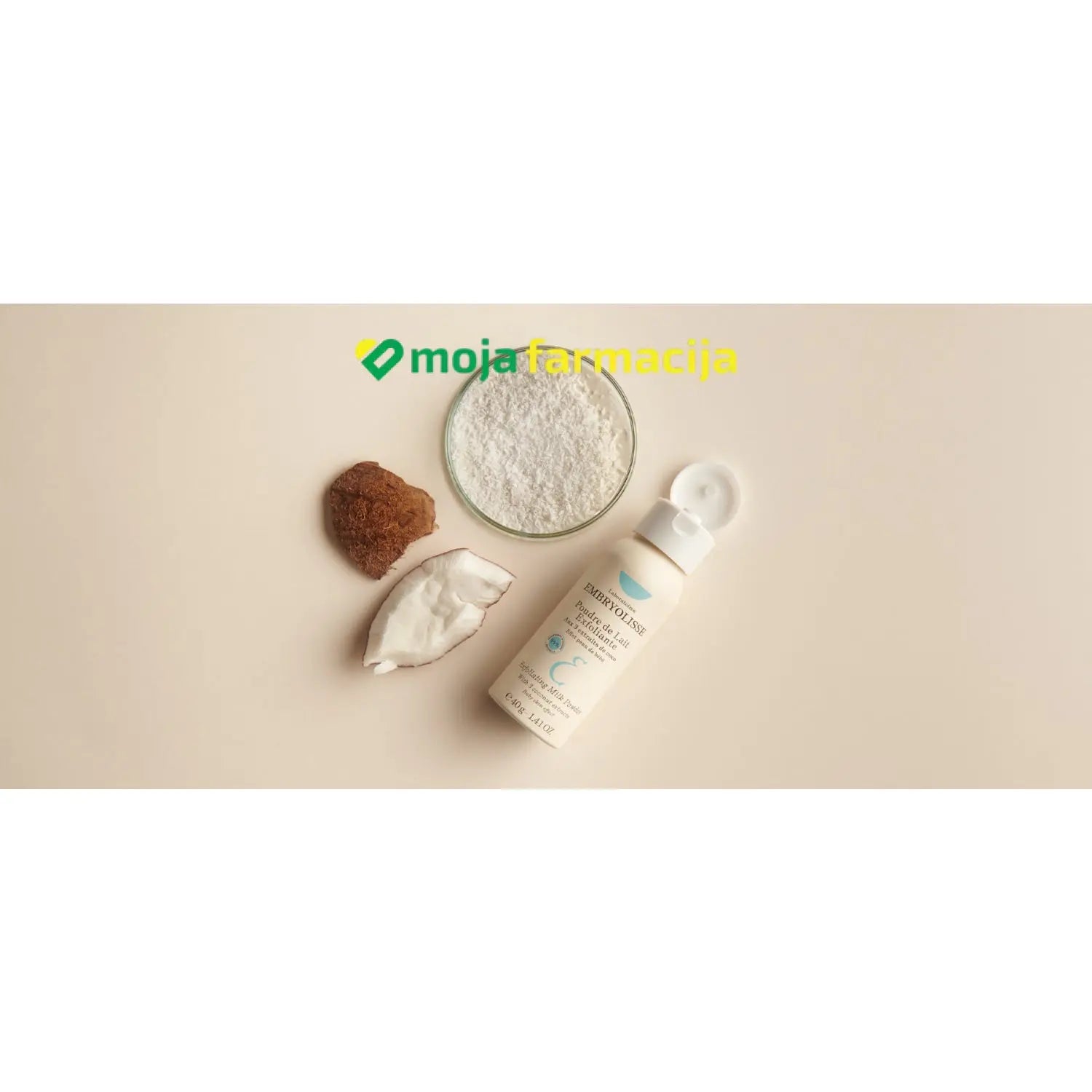 Embryolisse mliječni prah za piling, sa 99% sastojaka prirodnog porijekla prikladan je i za eksfolijaciju najosjetljivije kože. Pomiješan s vodom stvara prozračnu, mliječnu, pjenušavu teksturu sa česticama kokosa, a također se može kombinirati s drugim proizvodima za njegu kože za personaliziranu upotrebu koja zadovoljava potrebe svake kože.