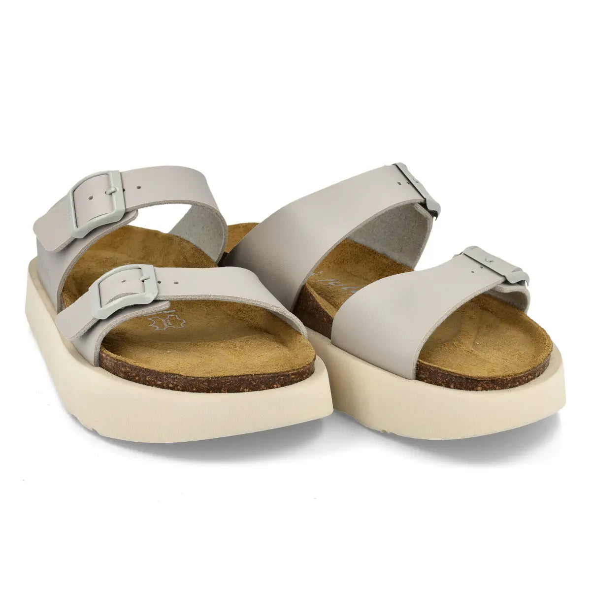 Gornjište izrađeno od elastičnog Futti-last materijala prilagođava se obliku stopala, dok dva remena s metalnim kopčama omogućavaju individualno podešavanje i sigurno pristajanje. EVA potplat s platformom od 25 mm čini papuče laganim, stabilnim i pogodnim za svakodnevno nošenje.