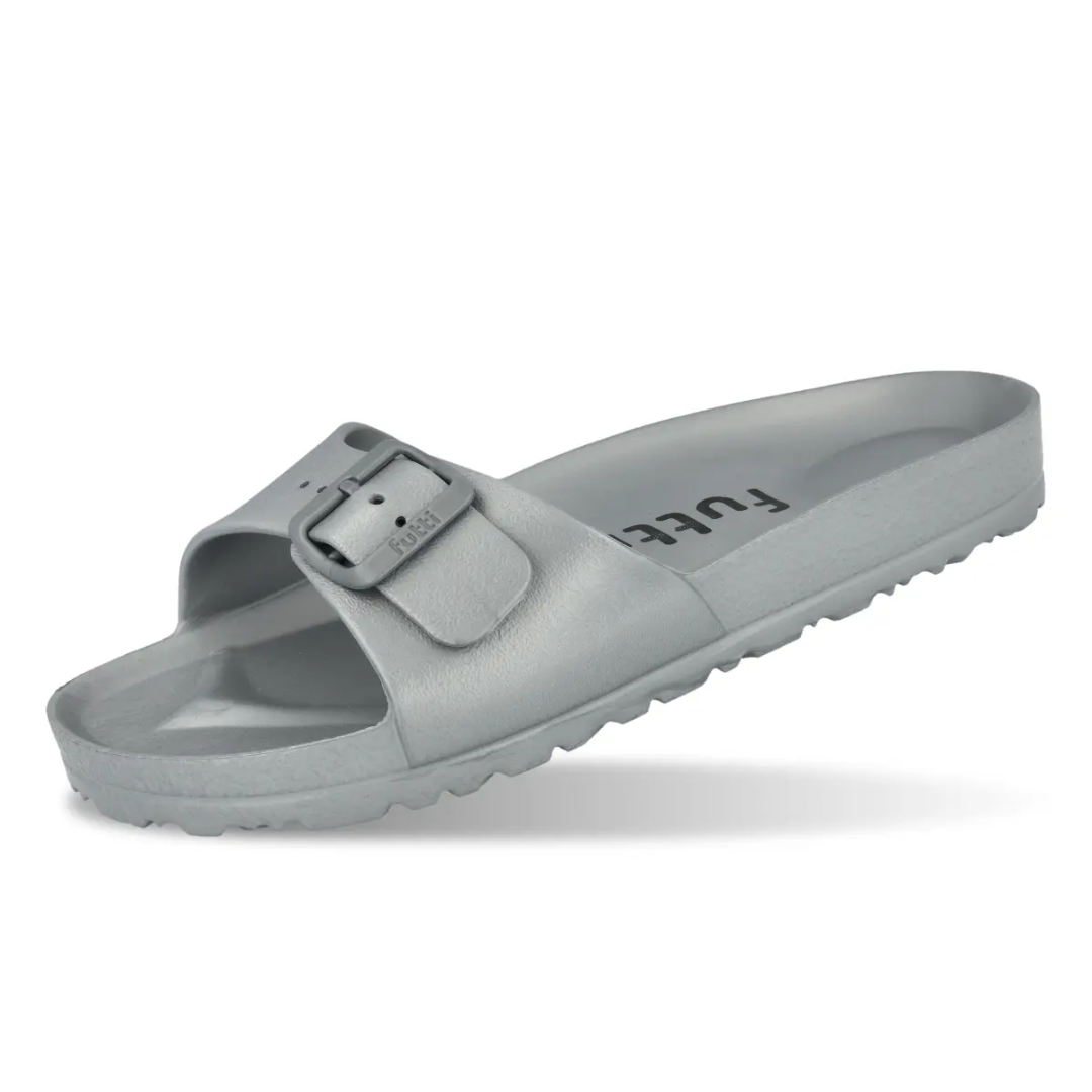 Anatomski oblikovano tabanište od EVA materijala. Gornjište, uložna tabanica, i potplat su također izrađeni od EVA materijala. Papuče imaju nisku petu i detalje poput remena s podesivom kopčom.