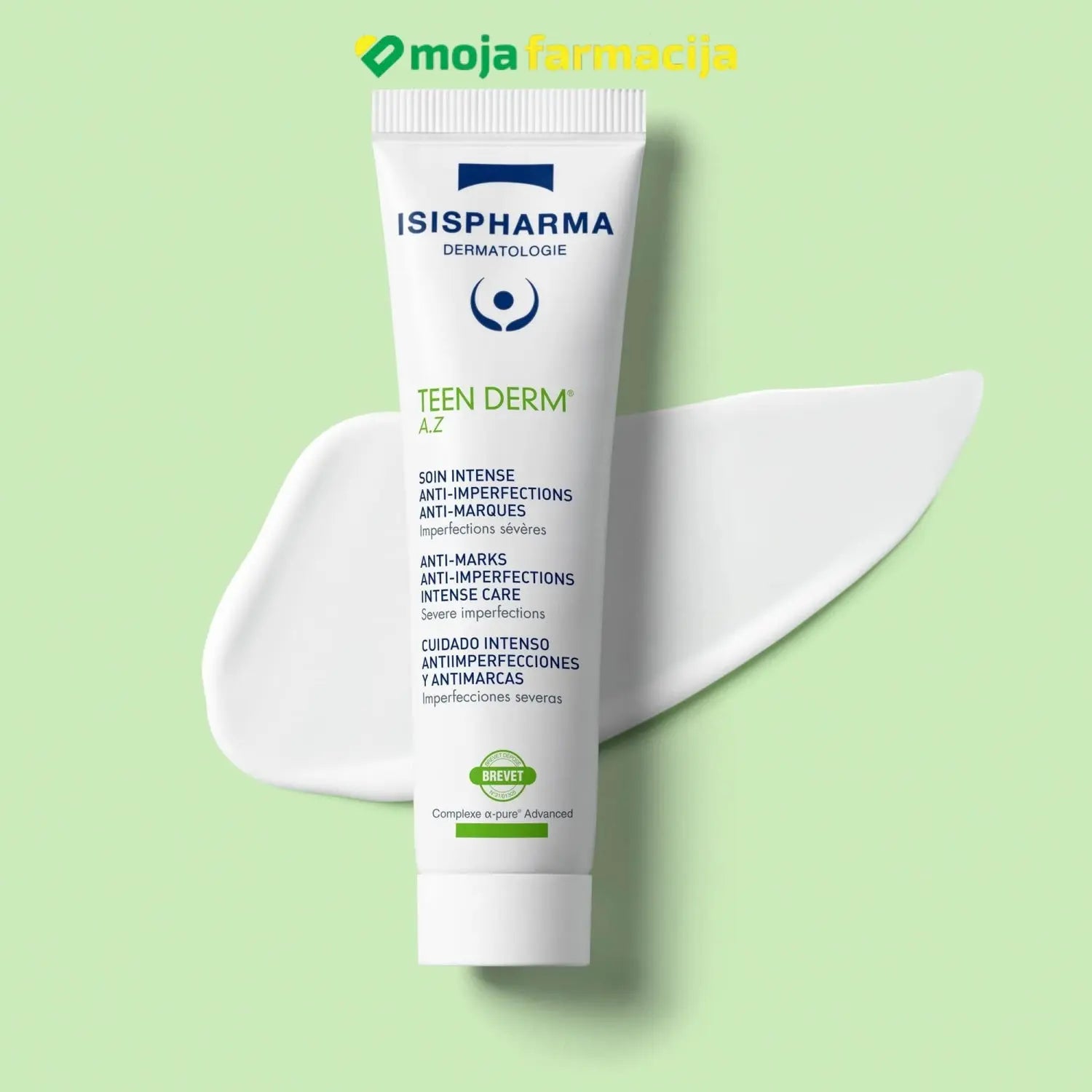ISISPHARMA Teen Derm A.Z nije samo običan kozmetički proizvod; to je intenzivni tretman sa 15% azelaične kiseline i patentiranim $\alpha$-pure kompleksom koji pruža snagu kliničke njege u vašoj kućnoj rutini. Ako se borite s bolnim upalama ili tamnim mrljama koje ostaju nakon akni, ova krema nudi holistički pristup rješavanju nesavršenosti u samom korijenu. Zahvaljujući formulaciji koja je dokazano efikasna već nakon 5 dana, Teen Derm A.Z vraća koži potreban komfor, smanjuje masni sjaj i vidno ujednačava ten, ostavljajući lice čistim i umirenim.