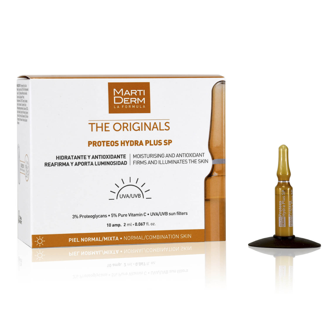 MartiDerm The Originals Proteos Hydra Plus SP ampule kombiniraju hidratantne, antioksidativne i zaštitne učinke kako bi pružile kompletnu njegu za normalnu do mješovitu kožu. Formulirane s UVA/UVB filterima, Proteos Hydra Plus SPF ampule štite kožu od štetnog djelovanja sunčevog zračenja, dok je intenzivno hidratiziraju i obnavljaju. Idealne su za svakodnevnu upotrebu, pružajući vidljive rezultate nakon kontinuirane primjene.
