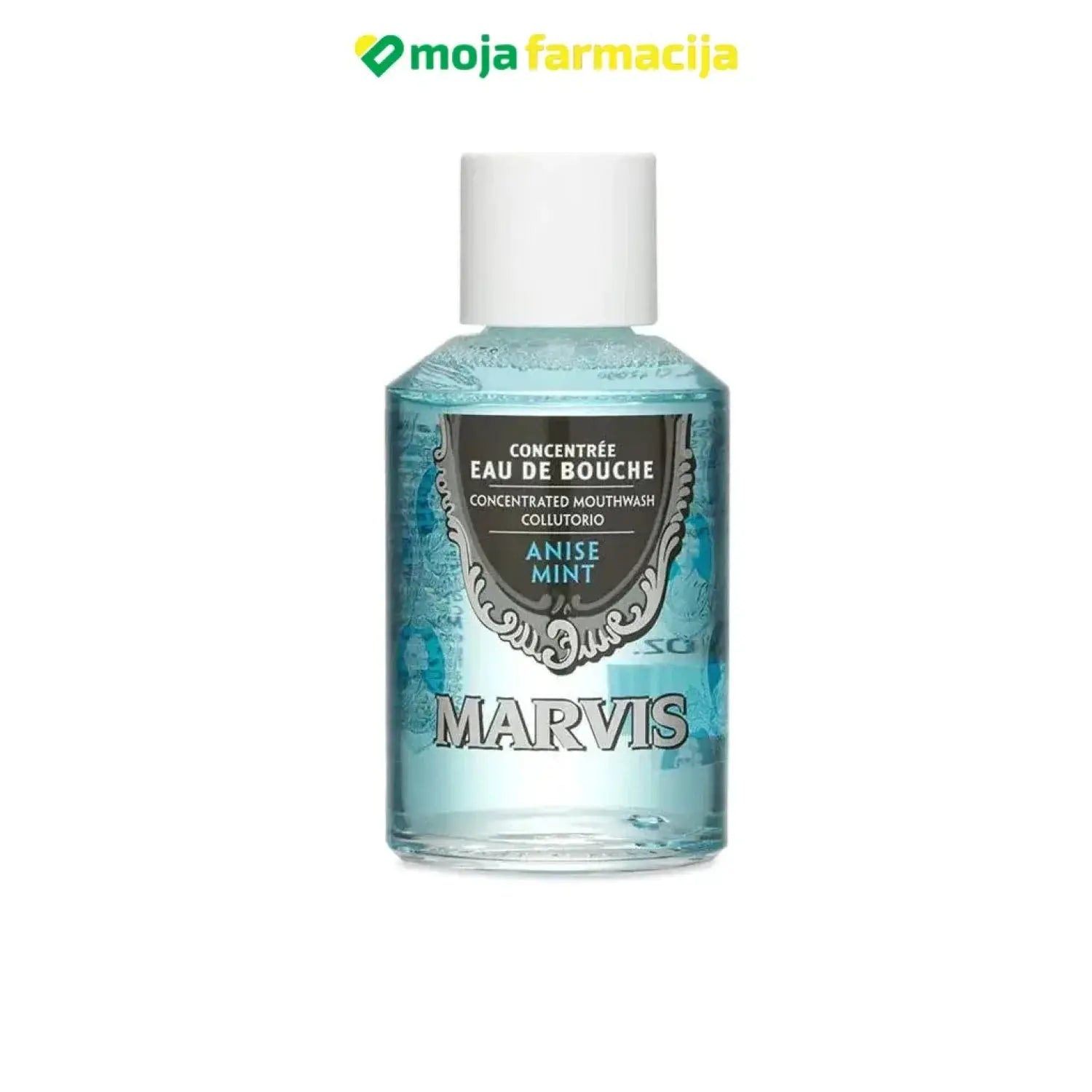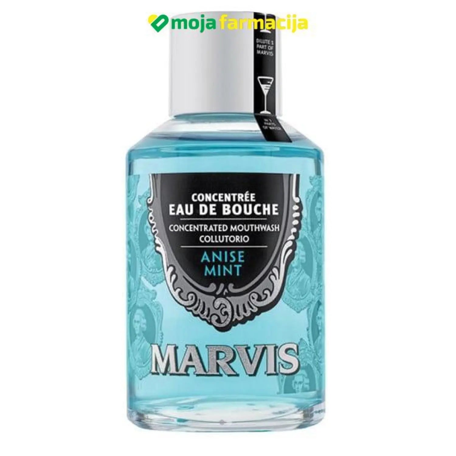 MARVIS Anise mint vodica za ispiranje usta s okusom anisa pružit će vam svjež dah s jedinstvenim, slatkim i aromatičnim okusom koji podsjeća na okus crnog sladića. Savršen je dodatak jutarnjem ili večernjem pranju zubi.