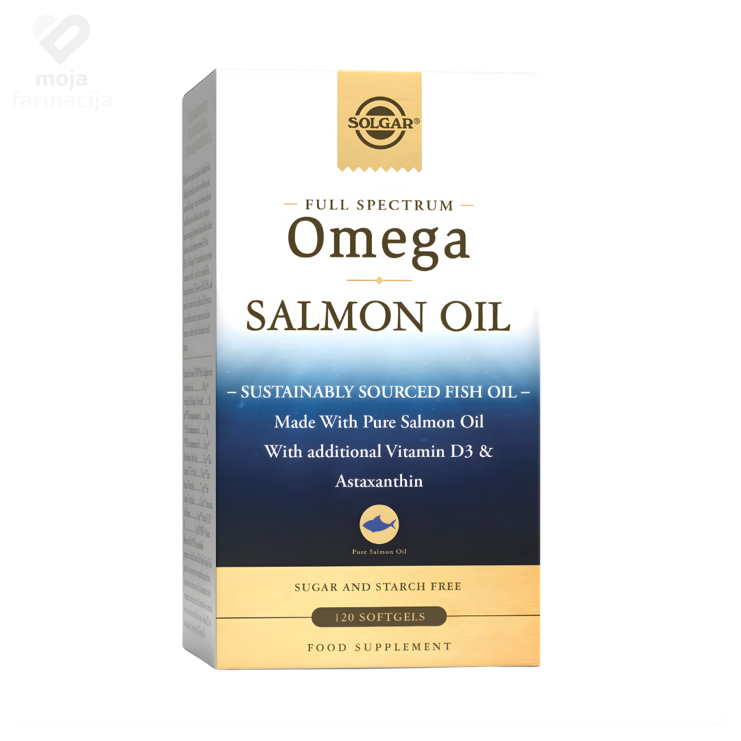 Kada tražite više od običnog ribljeg ulja, SOLGAR Full Spectrum Omega Salmon Oil pruža kompletan profil masnih kiselina onako kako ih priroda nudi. Dobijeno iz pročišćenog ulja norveškog lososa, ovo ulje osigurava ne samo EPA i DHA, već i omega-5, 6, 7 i 9 kiseline u omjerima sličnim onima u divljem lososu. Uz dodatak prirodnog astaksantina i vitamina D3, ova formulacija predstavlja vrhunski izbor za one koji žele poduprijeti zdravlje srca, imuniteta i mišića kroz visoko biološki aktivan proizvod.