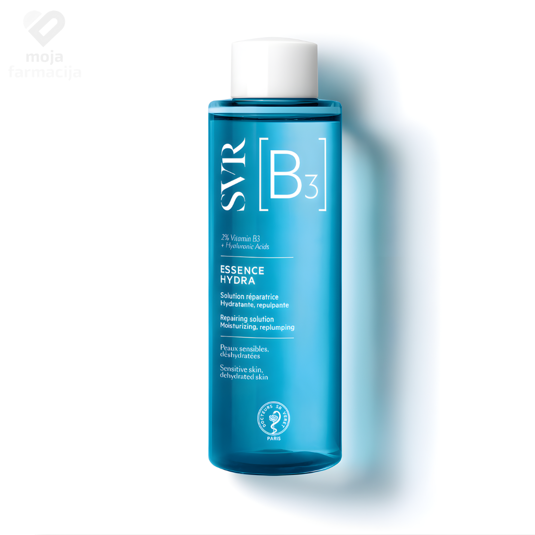 SVR [B3] Hydrating Essence je koncentrovani tretman dizajniran da trenutno umiri, zagladi i hidrira kožu tokom 24 sata. Ova esencija, obogaćena vitaminom B3 (niacinamidom), idealna je za osjetljivu i dehidriranu kožu koja pokazuje prve znakove starenja i umora. Deluje kao “booster” koji priprema lice za bolju apsorpciju seruma i krema, dok iz dana u dan vidno popravlja kvalitet kože i jača njenu prirodnu barijeru.