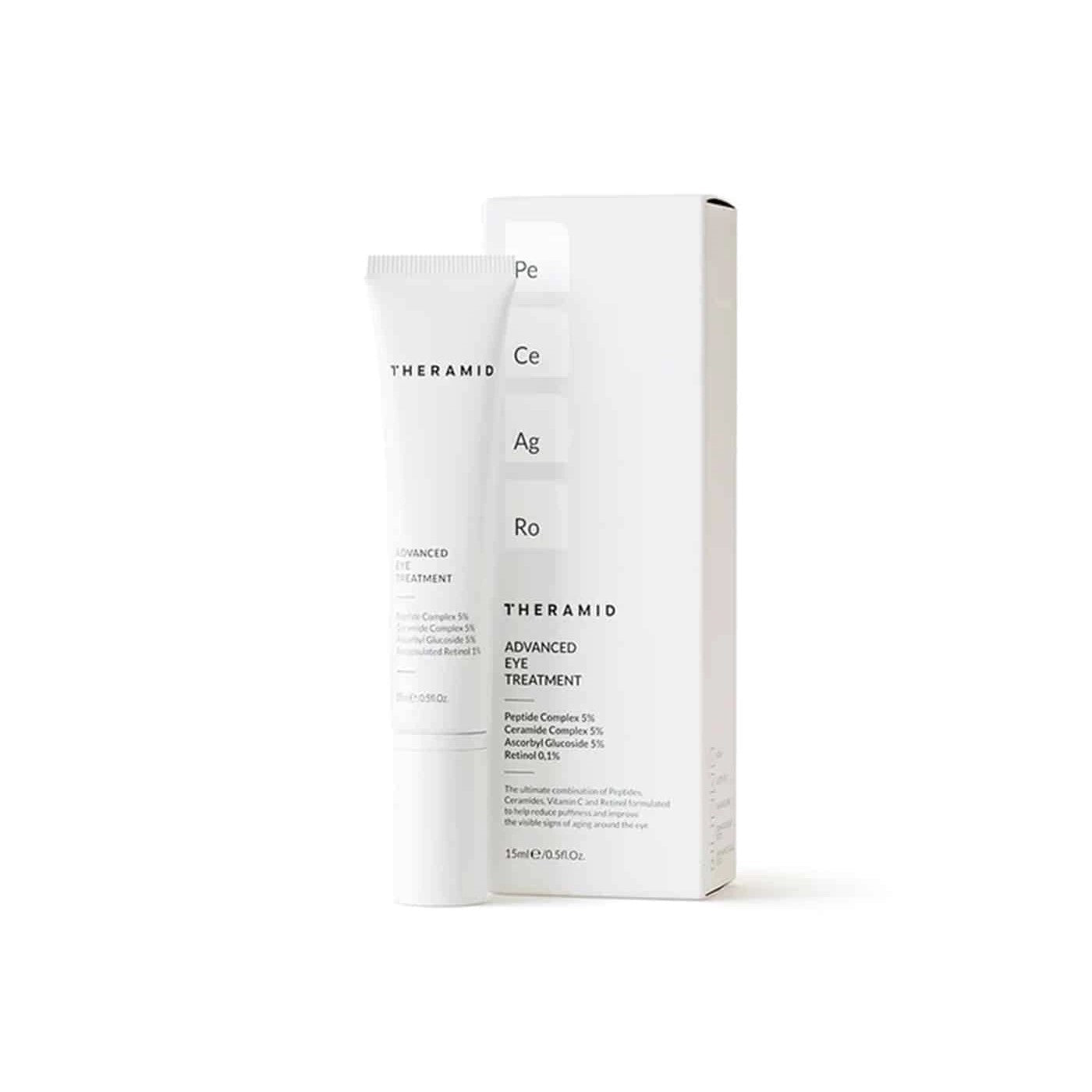 THERAMID Advanced Eye Treatment krema za područje oko očiju smanjuje znakove starenja i natečenosti. Ciljani tretman za smanjenje vidljivih znakova starenja u području oko očiju dok hidratizira ovo osjetljivo područje. Koža oko očiju je tanja i osjetljivija od ostatka lica, pa su znakovi starenja izraženiji, što zahtijeva posebnu njegu. Ovaj vrlo učinkovit tretman pomaže smanjiti podbuhlost i podočnjake te smanjuje pojavu svih znakova starenja oko očiju.