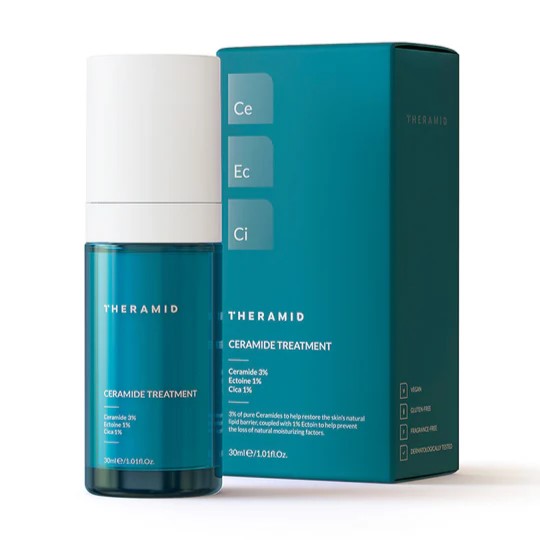 THERAMID Ceramide Treatment Serum sadrži 3% čistih ceramida i 1% ektoina, pomažući vratiti optimalnu razinu vlažnosti kože. Također jača kožnu barijeru kako bi spriječio transepidermalni gubitak vode, osiguravajući dugotrajnu hidrataciju, sprječavajući isušivanje i štiteći kožu od vanjskih utjecaja koji uzrokuju prerano starenje.
