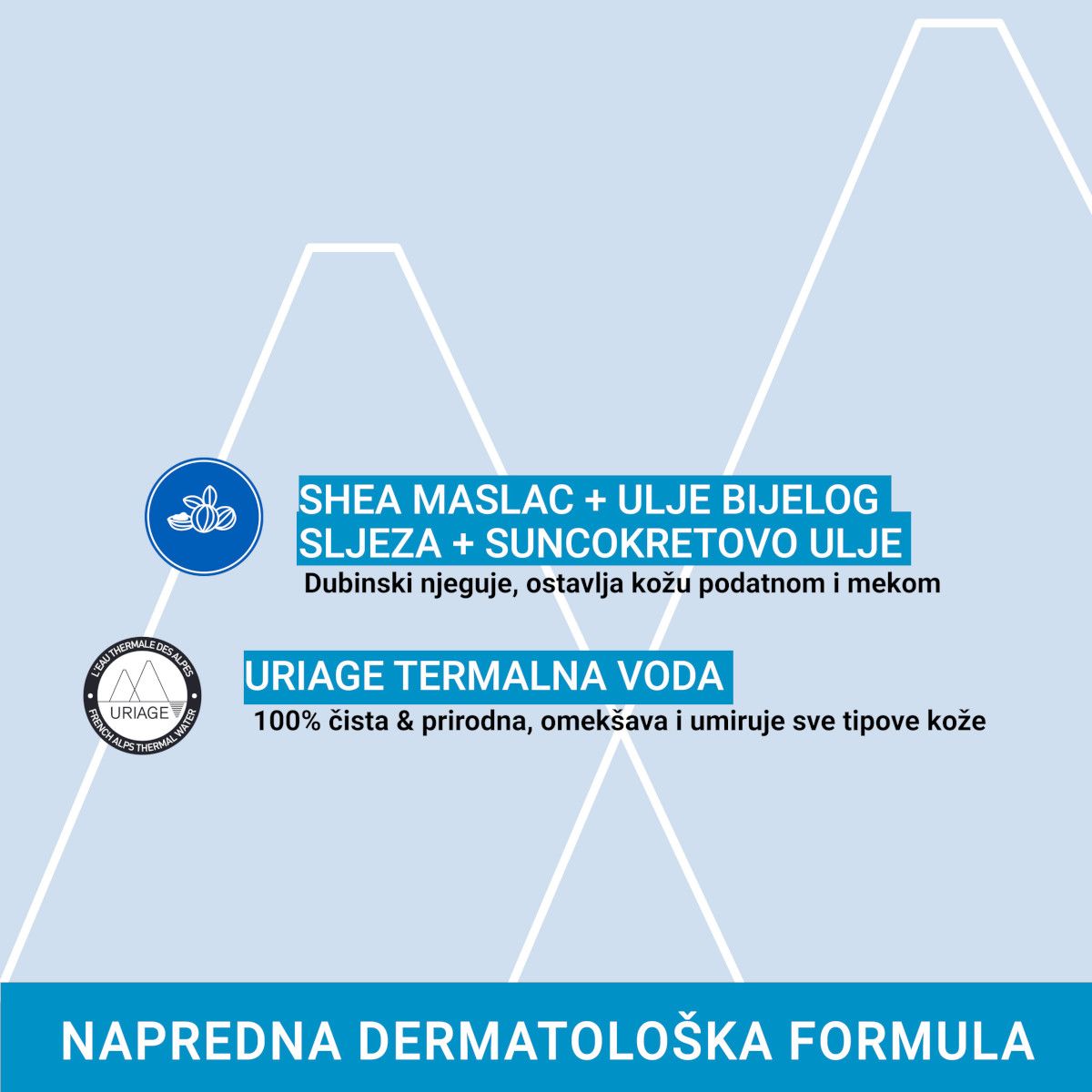 S Uriage termalnom vodom koja posjeduje hidratizirajuća i zaštitna svojstva, čuva hidrolipidni film kože.
