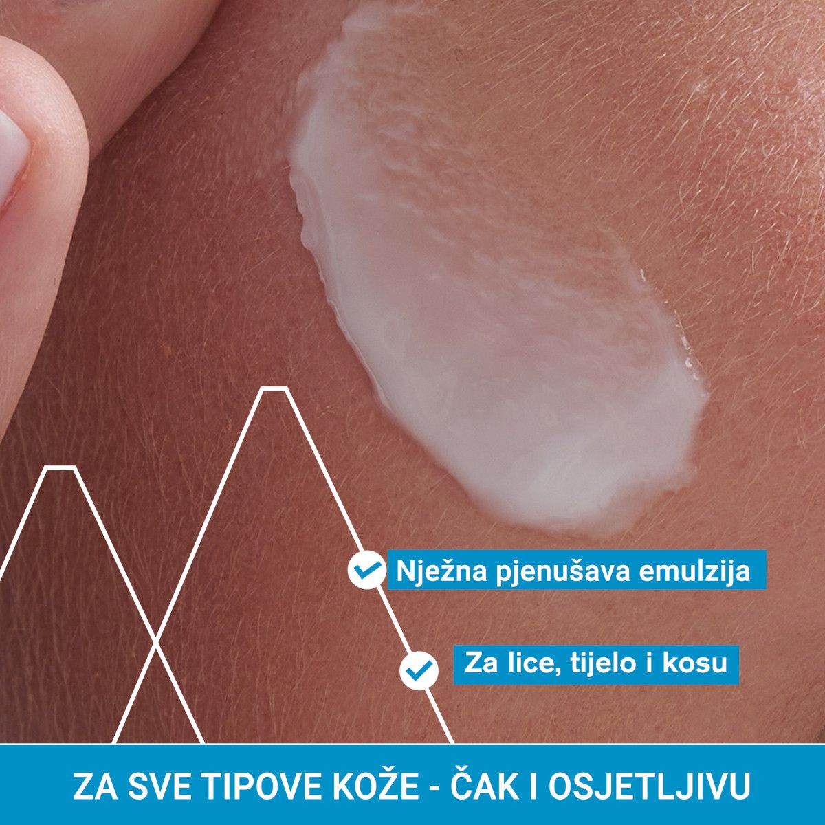 Svojom formulacijom bez sapuna s fiziološkim pH, nježno uklanja sve nečistoće.