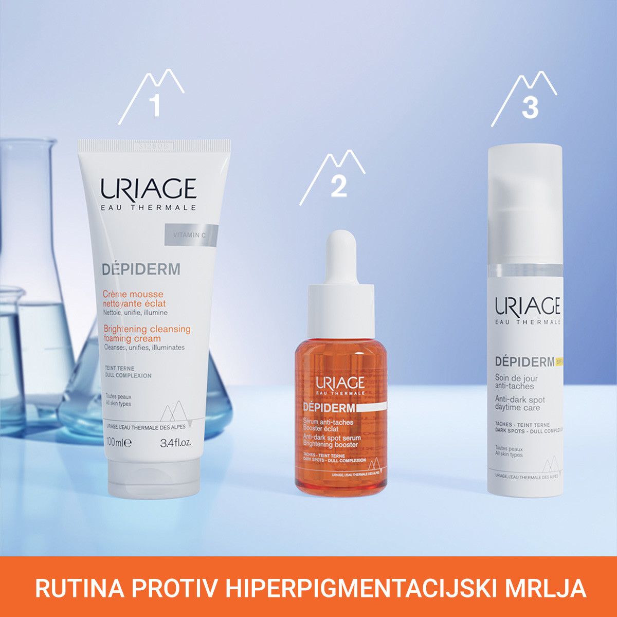 - 10% Mela Technology (ekstrakt graška i saharoza + Uriage termalna voda + enoxolone -100% prirodnog porijekla): korekcija i prevencija tamnih mrlja.