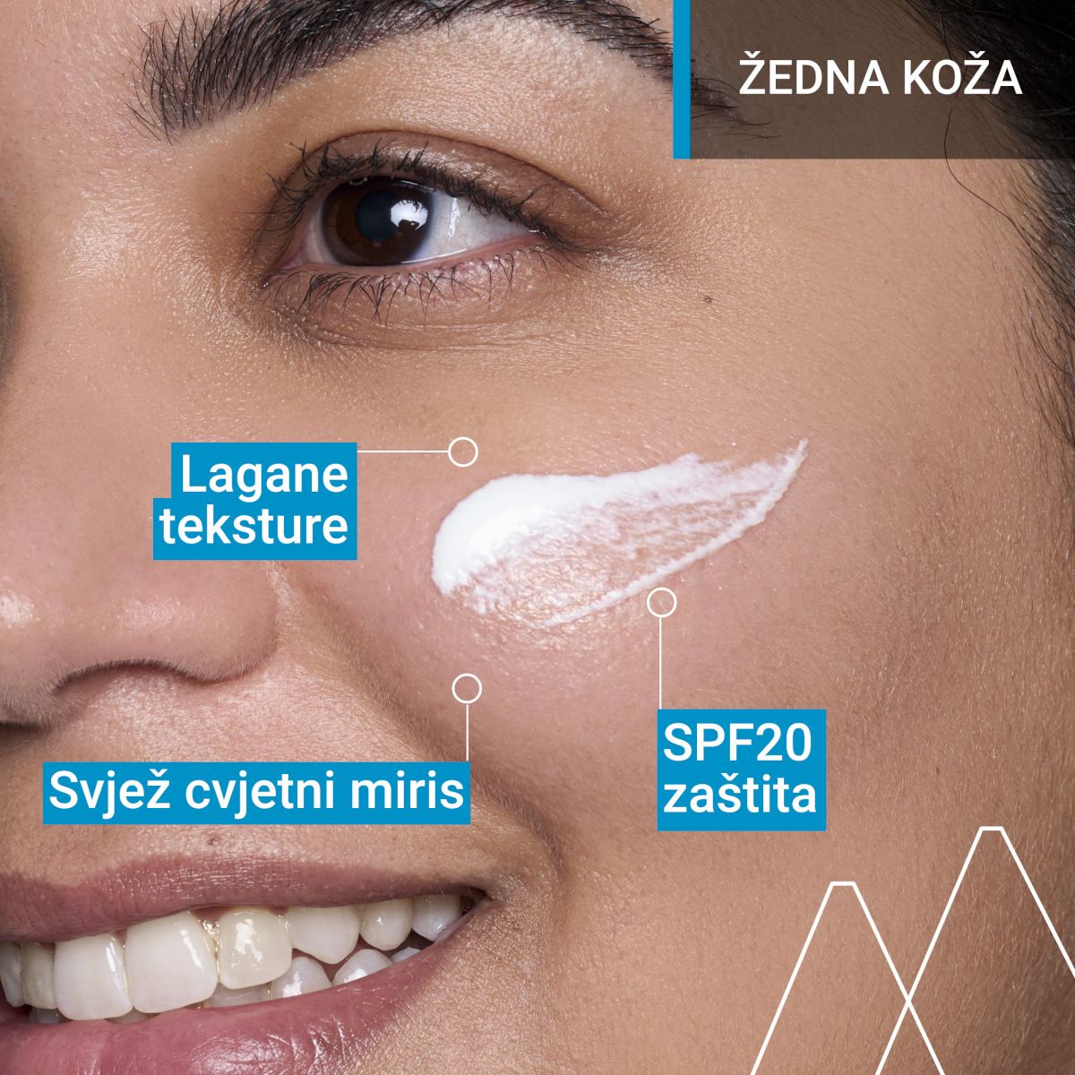 - UVA/UVB filteri (SPF20): Pružaju neophodnu dnevnu zaštitu od sunčevog zračenja, sprečavajući pojavu tamnih mrlja i sitnih bora.