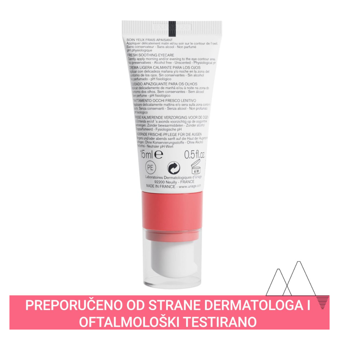 URIAGE Tolederm Control umirujuća krema za područje oko očiju je posebno formulirana krema za područje oko očiju koja pruža trenutnu i dugotrajnu udobnost za hiperreaktivnu, osjetljivu i netolerantnu kožu. Zahvaljujući minimalističkoj formuli s prirodnim aktivnim sastojcima, ova krema umiruje, hidratizira, jača kožnu barijeru i smanjuje pojavu podočnjaka i podbuhlosti.