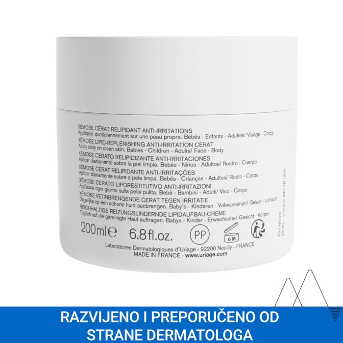 Extra bogata formula Xemose cerata sadrži 25% shea maslaca, Uriage termalnu vodu, Cronoxine i Cerasterol-2F (omega-3 + omega-6 ceramidi i fitosteroli) koji intenzivno njeguju i donose trenutnu, dugotrajan osjećaj ugode. Cerat odmah umiruje kožu.