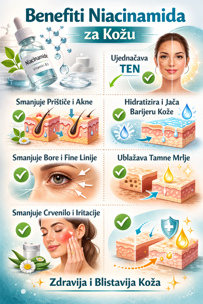 Svi mi koji volimo skincare znamo onaj osjećaj – uđeš u drogeriju ili apoteku, staneš ispred police i gledaš u more bočica. Retinol, vitamin C, kiseline… i onda taj famozni niacinamid. Dok se trendovi u 2026. mijenjaju brže nego ikad, jedan sastojak ostaje neprikosnoveni kralj svake police.