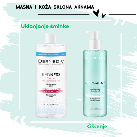 U nastavku ti donosimo primjere rutine čišćenja sa DERMEDIC proizvodima za čišćenje lica, kako za tip kože tako i za problem.