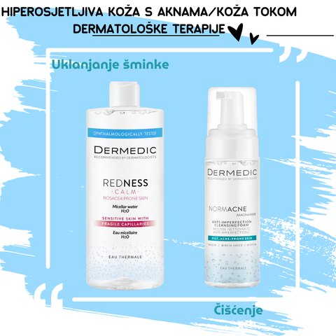 U nastavku ti donosimo primjere rutine čišćenja sa DERMEDIC proizvodima za čišćenje lica, kako za tip kože tako i za problem.